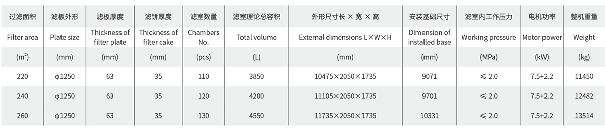 高壓壓濾機是集機、電、液于一體的固液分離機械設備,它主要由五大部分組成:機架部分、自動拉板部分、過濾部分、液壓部分和電器控制部分。可根據需求增加接液盤、翻板、儲泥斗、水洗系統、濾布曲張架、氣卸料等。其結構較簡單,操作容易,運行穩定,保養方便;過濾面積選擇范圍靈活,占地少;對物料適應性強, 效率高,含水率低,適用于各行各業物料脫水處理。現已應用于市政、礦山、紙業等多個大型固廢脫水處理行業。設備使用簡單,操作、維護方便,是理想的固液分離設備。專利技術(專利類型:發明,專利號:CN104260402A),圓形濾板,濾板面結構自主知識產權設計,使用壽命長,密封性強,不噴漿,耐高壓,過濾效果好,濾餅含固高。