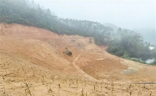 在龍勝鎮(zhèn)白村村委會(huì),省道274以西約2公里的大山里,經(jīng)過(guò)蜿蜒曲折的山路,到達(dá)非法固廢填埋場(chǎng)污染案現(xiàn)場(chǎng)。該處共有非法固廢填埋場(chǎng)3個(gè),最小的經(jīng)平整處理過(guò)的填埋場(chǎng),平地面積也比籃球場(chǎng)大。