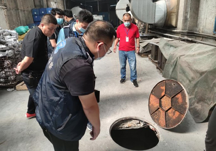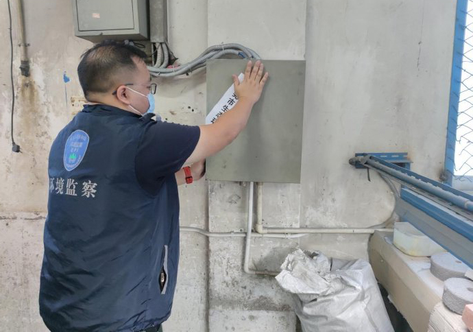 執法人員立即對該情況進行調查取證,并繼續對企業生產工序及廢水、廢氣污染防治設施進行地毯式排查,發現該企業B棟廠房一樓設有6臺壓鑄機(內置熔爐),其中2臺壓鑄機內置熔爐燃燒的材料為生物質燃料,產生的廢氣未經處理直接排放,排放口有冒黑煙的情況。經查,該企業通過環評審批的必須是用電的壓鑄機熔爐,但企業于2020年4月擅自將其中2臺改成了生物質熔爐。執法人員立即對該企業的打磨、拋光生產車間進行查封。