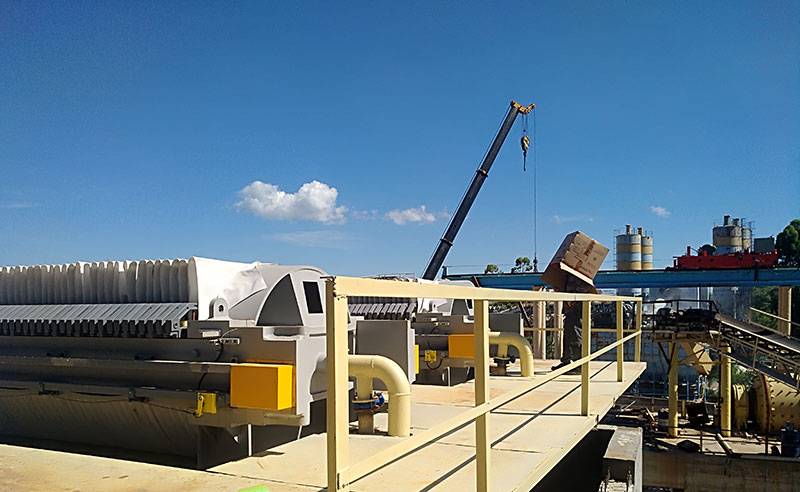 高干度,高產(chǎn)能,廢渣可壓榨至含水率30%以下,低至15%,比普通廂式壓濾機(jī)低10個(gè)點(diǎn),比帶式壓濾機(jī)低15個(gè)點(diǎn),配置金凱地壓濾機(jī)廠家兩臺(tái)XMYD1500-130PC-400廂式高壓壓濾機(jī)可滿足1000m3/d洗砂生產(chǎn)線的廢渣脫水需求。