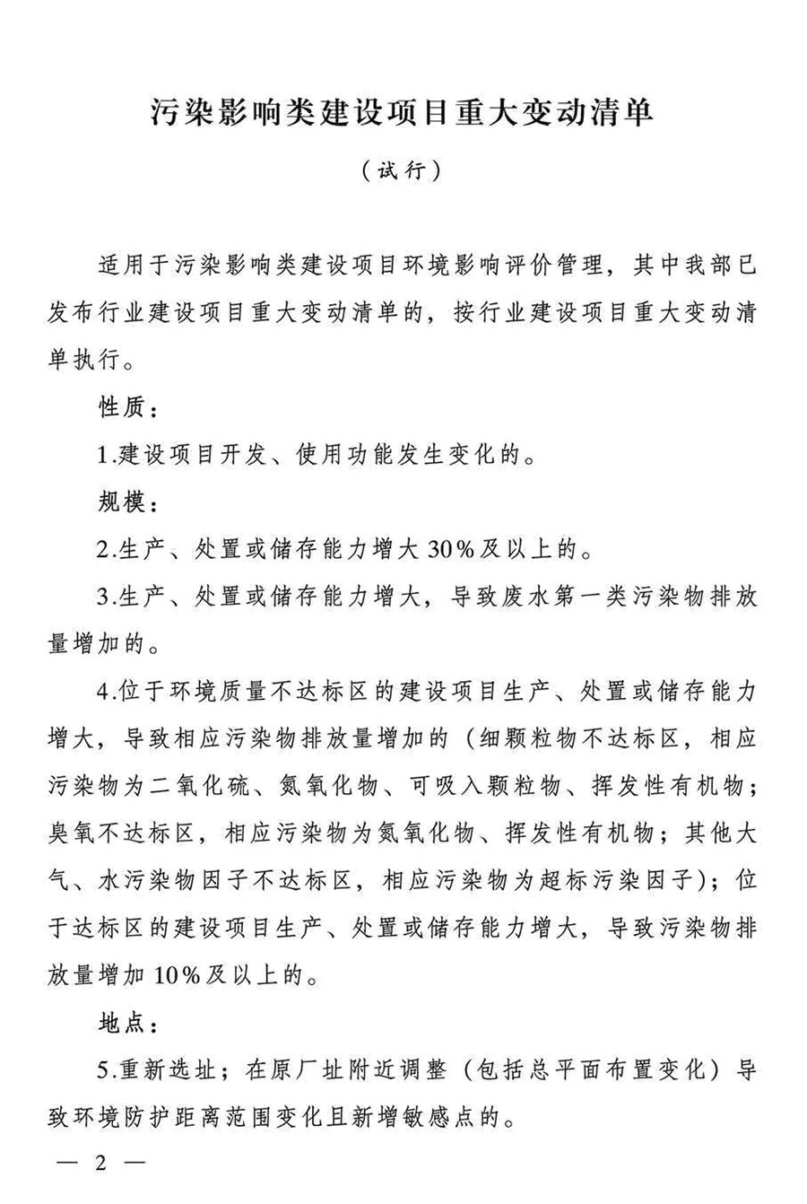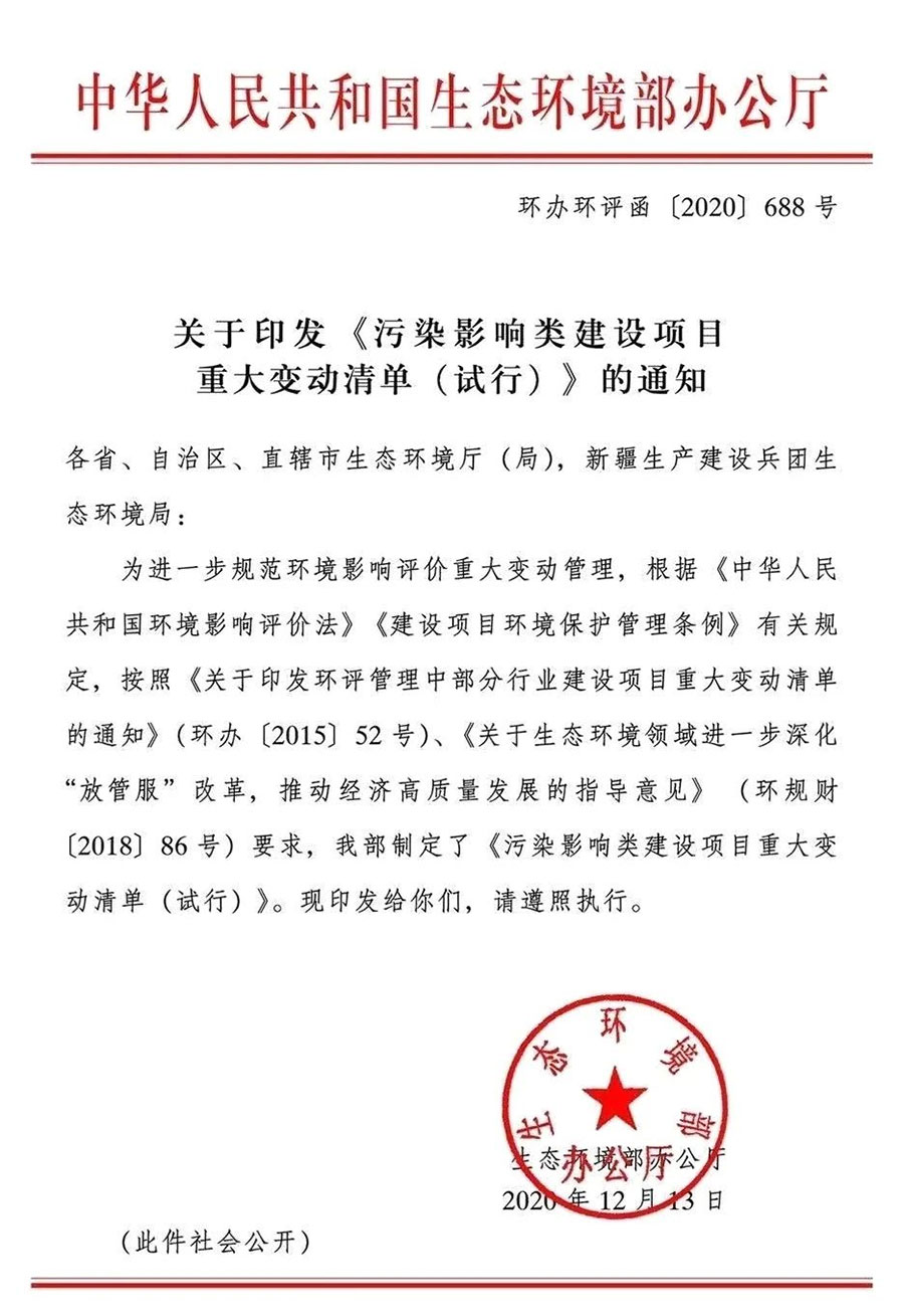 生態(tài)環(huán)境部發(fā)布《污染影響類建設項目重大變動清單(試行)》
