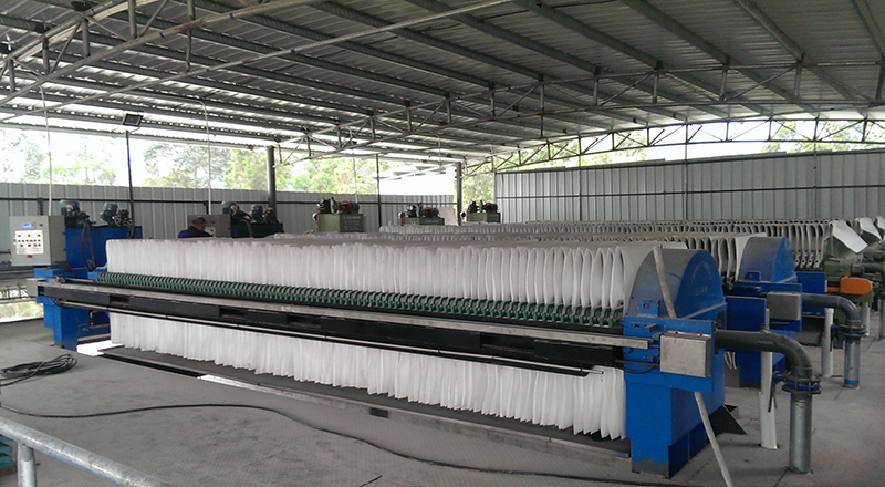 液壓油產(chǎn)生的動力會直接通過傳動裝置傳送給過濾室,過濾室中的主要構(gòu)成部分就是污泥廂式壓濾機的濾板和濾布,動力會促使濾板壓緊濾布從而使過濾液在一定速度下經(jīng)過濾布。周而復(fù)始,濾板和濾布承受的壓力也非常大,所以要經(jīng)常對濾板和濾布做好清洗工作,污泥廂式壓濾機在清洗時保證濾板的表面沒有過濾液造成的劃痕或者凹陷的地方,而濾布表面也沒有任何的濾渣殘留。