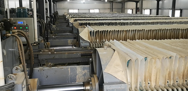 3、廂式壓濾機(jī)在壓濾后,通過管道,吹入空氣,鼓動(dòng)膜板,對(duì)濾餅進(jìn)行擠壓,進(jìn)行二次脫水,從而達(dá)到進(jìn)一步降低濾餅水分的目的。